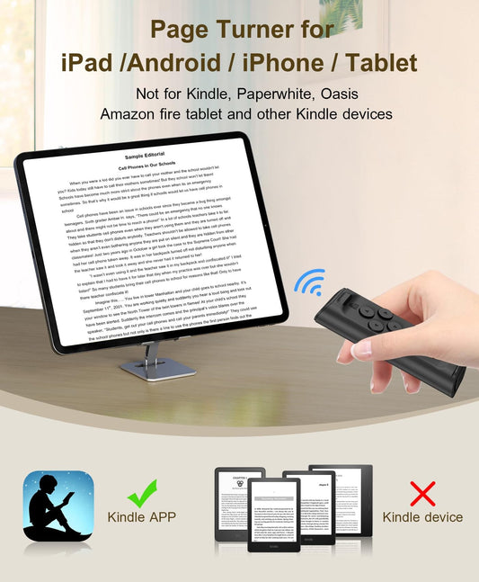 Cilifer®Remote Control Scrolling for TikTok. Page Turner for Kindle App. Camera Camcorder Remote Controls. Scrolling Remote for TikTok/iOS/Android/iPad/iPhone/Tablet with Phone Stand Black