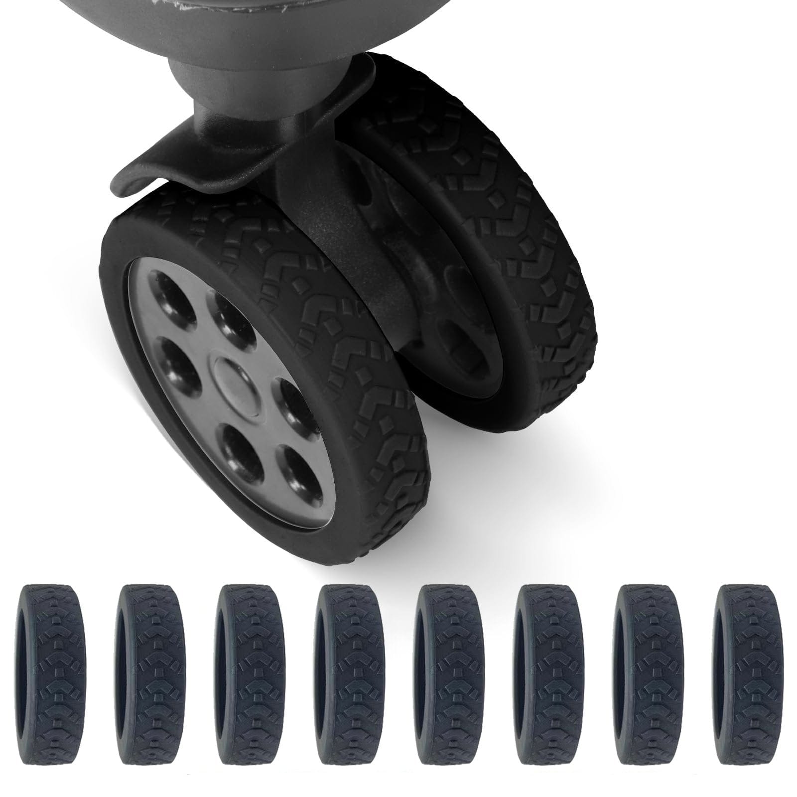 The luggage wheel cover can protect suitcase wheels from scratches. scuffs. and damage caused by sharp objects .just like luggage protector cover and strap the wheels cover can protect your luggage.