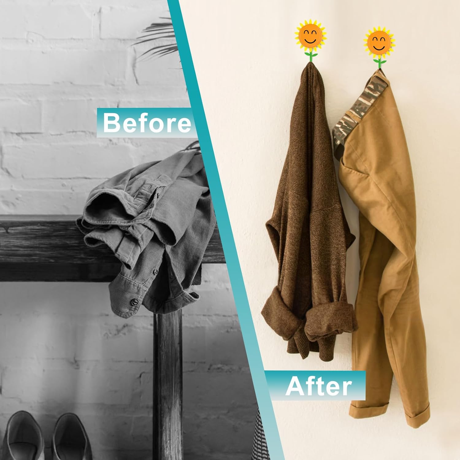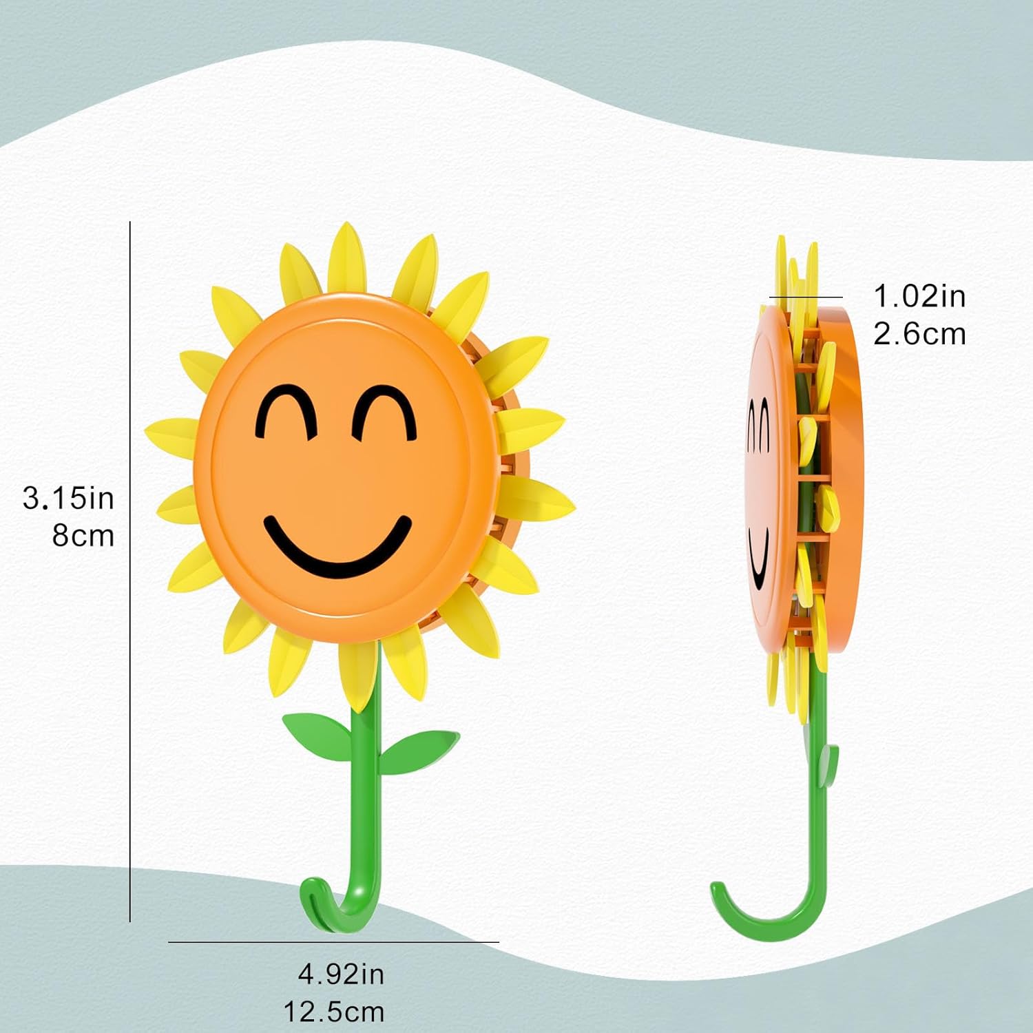• 【Sunflower Design】Sunflower smiley face wall hook that bloom when you hang items. The petals unfold like a cheerful sunflower. turning ordinary storage into a delightful. happy moment that hanging hooks for hanging adds charm to any space